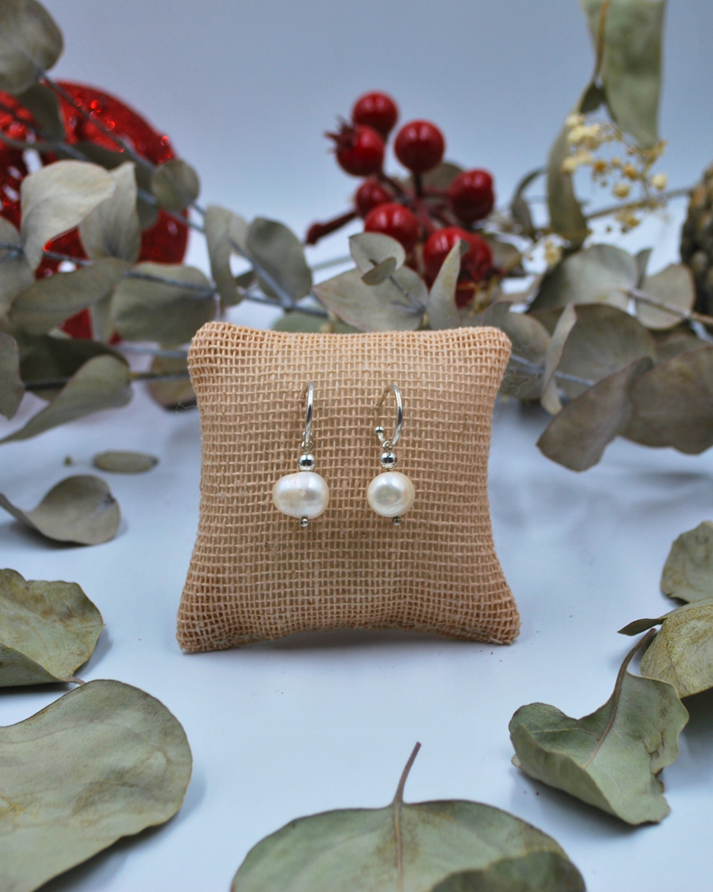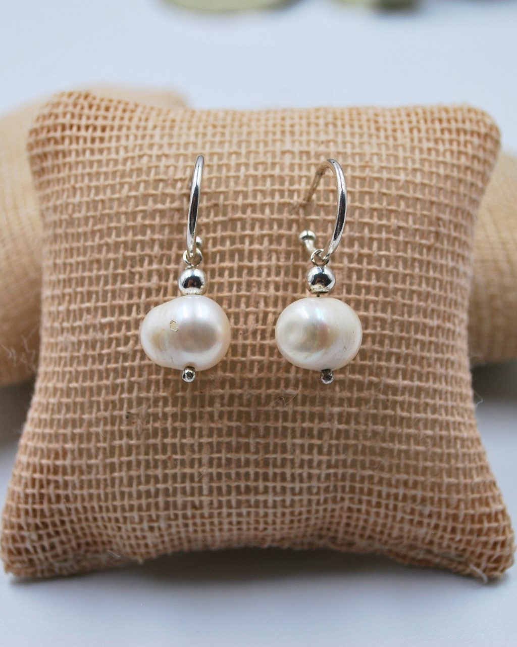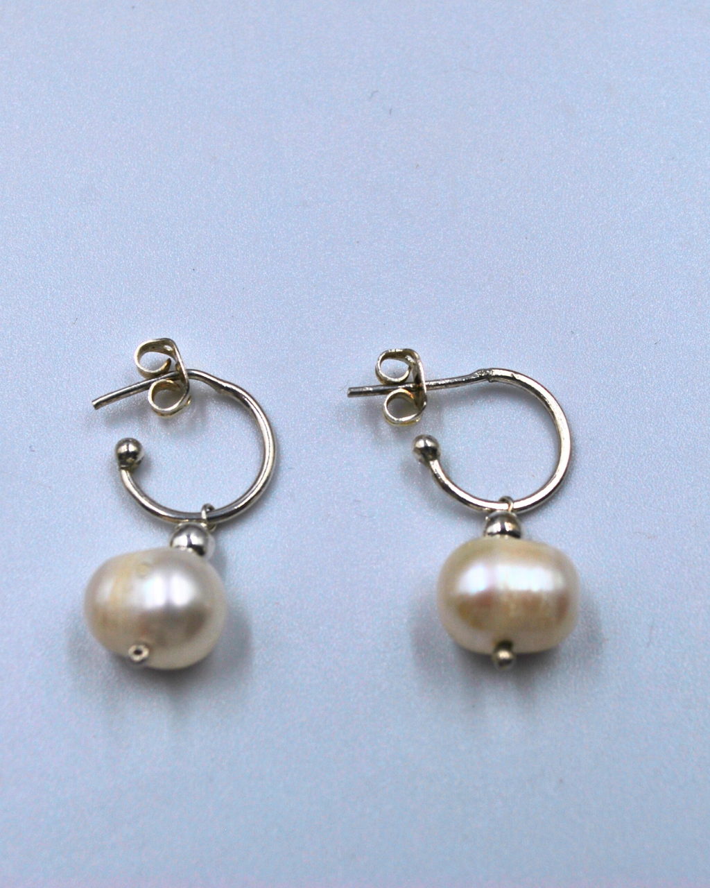 Arete de poste con arracada de plata y perla Medidas: 1 cm laro