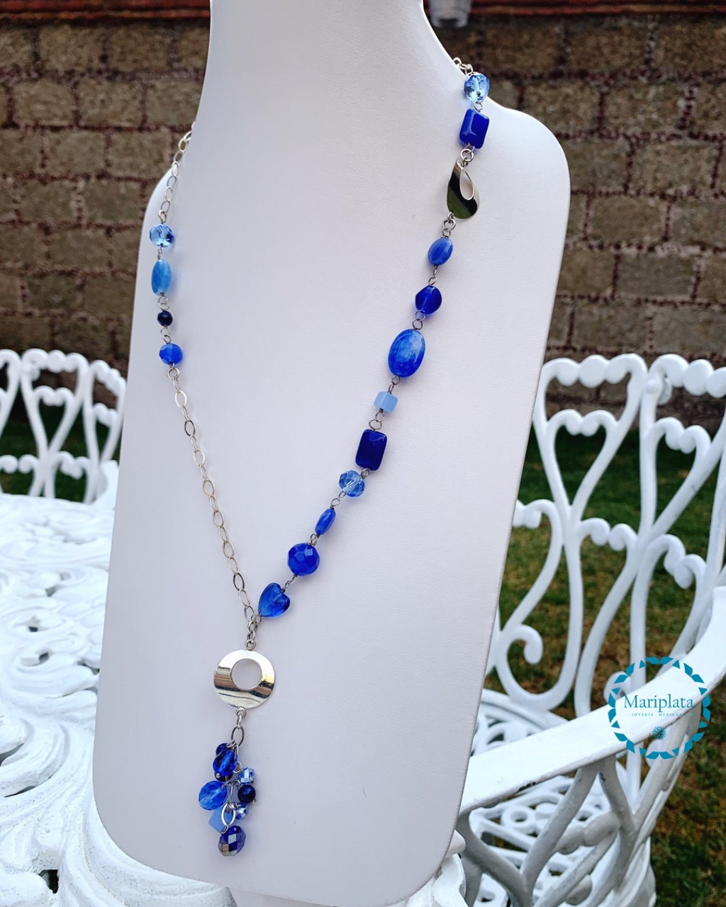 Collar de 72 cms ( 36 doblado) con un corbatin de 6 cms. Y aretes largos de 3 cms.
