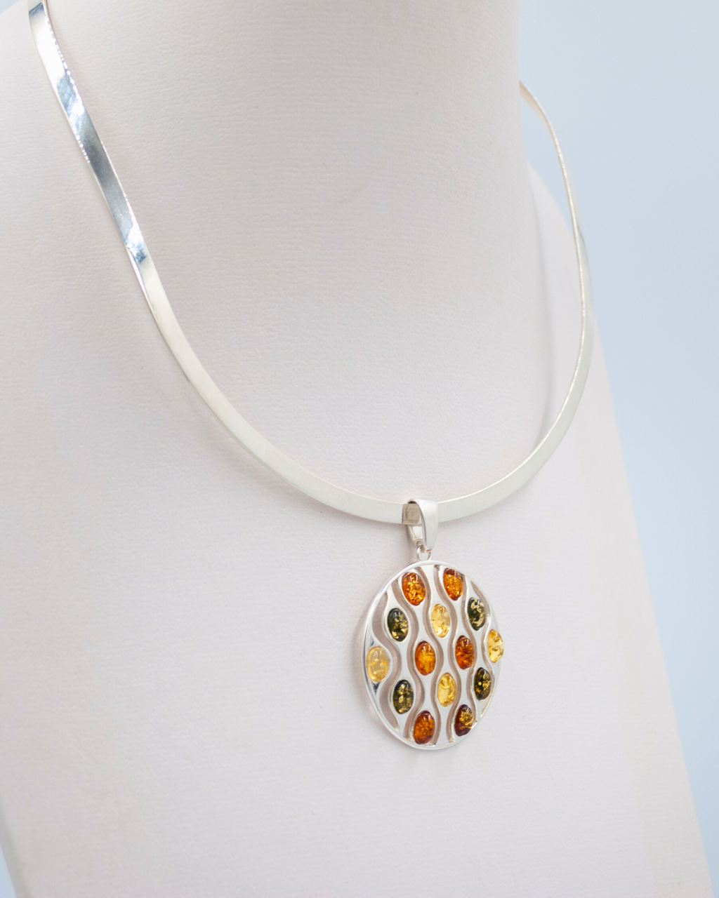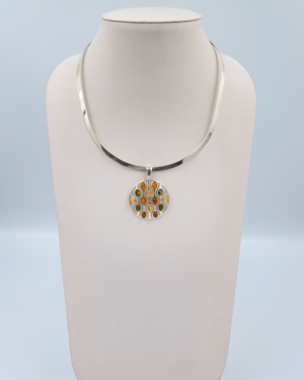 Dije redondo con aplicaciones en tonalidades Ambar Medidas: 3 cm *No incluye collar*