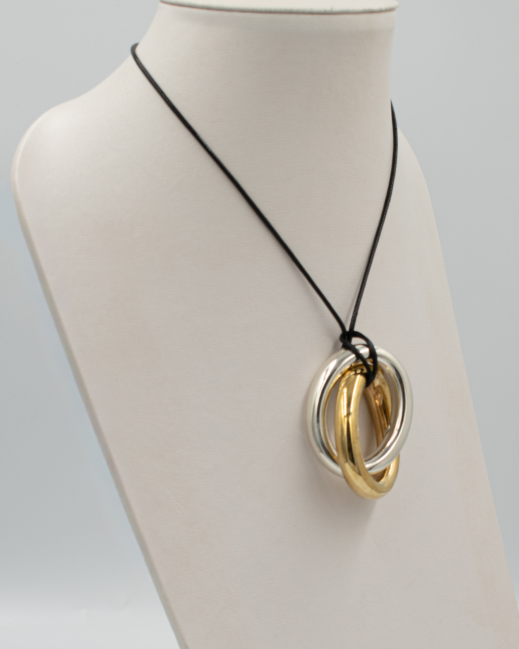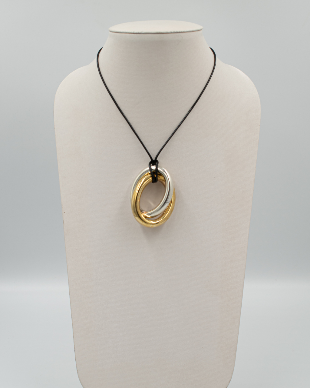 2 óvalos de tubo entrelazados Dije versátil, elegante y casual Material: Plata electroformada Medidas: 4.5 cms Combinación perfecta de aros dorado y plateado