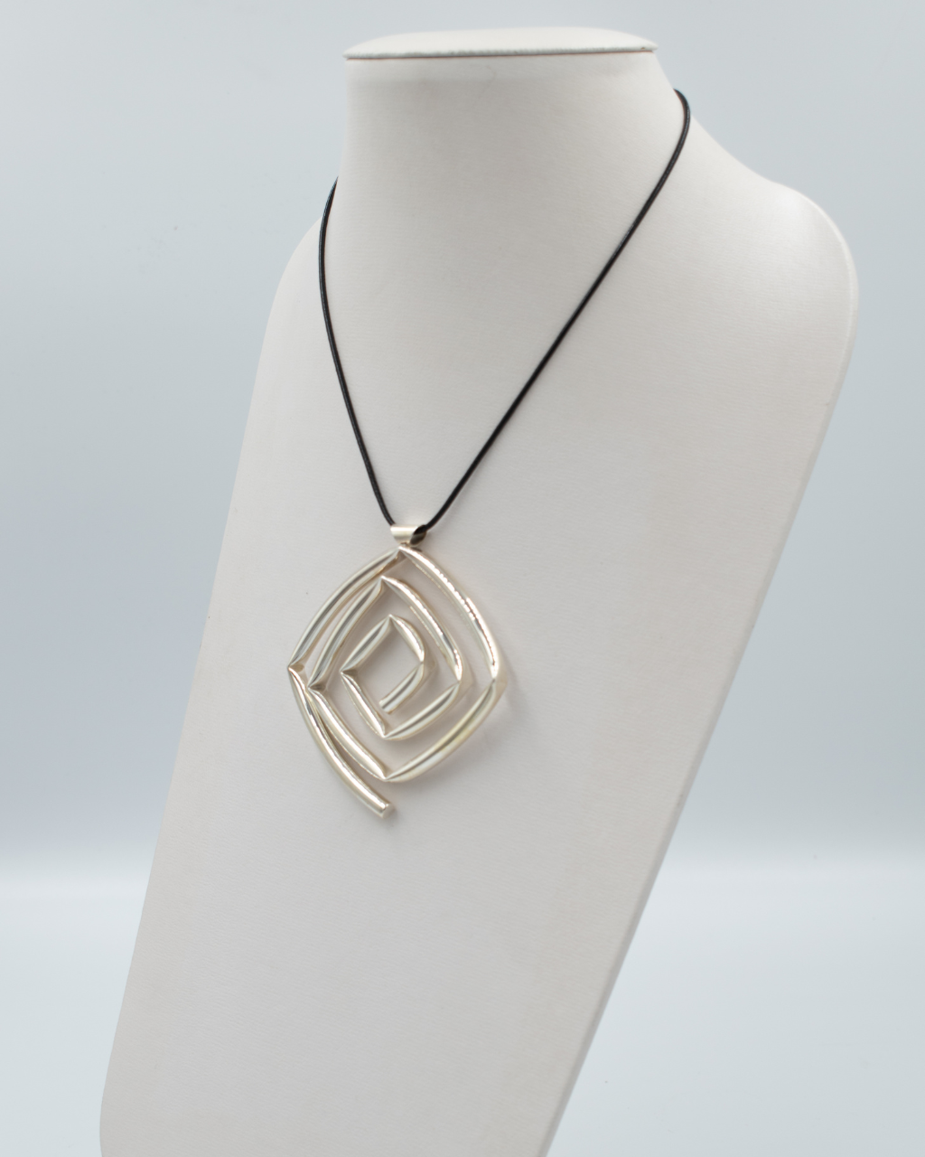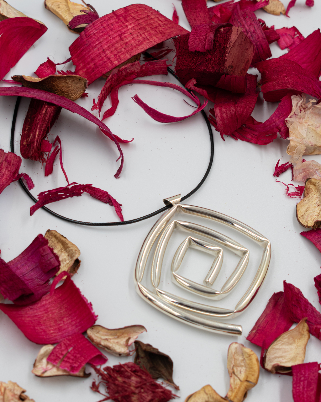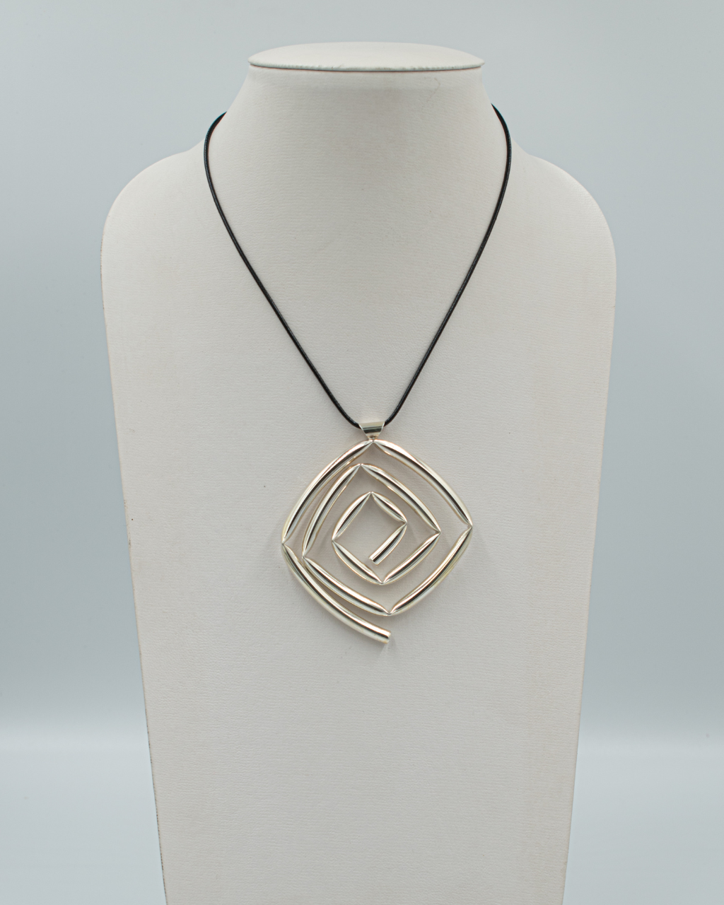 Dije cuadrado de tubo en espiral Material: Plata electroformada Medida: 6 cms No incluye lazo Perfecto para usar con escote en V, suéter de cuello alto o redondo