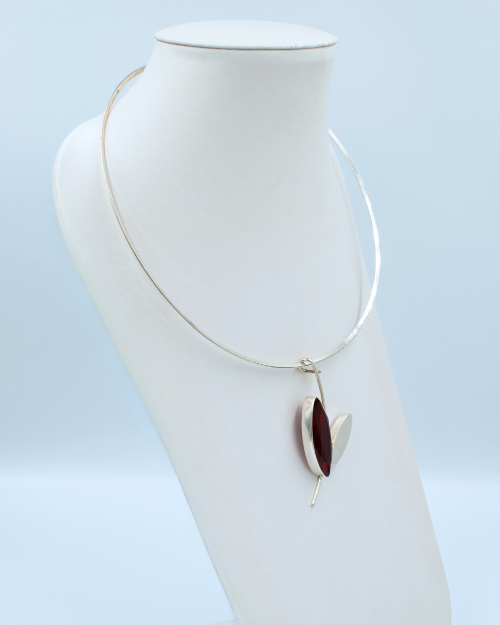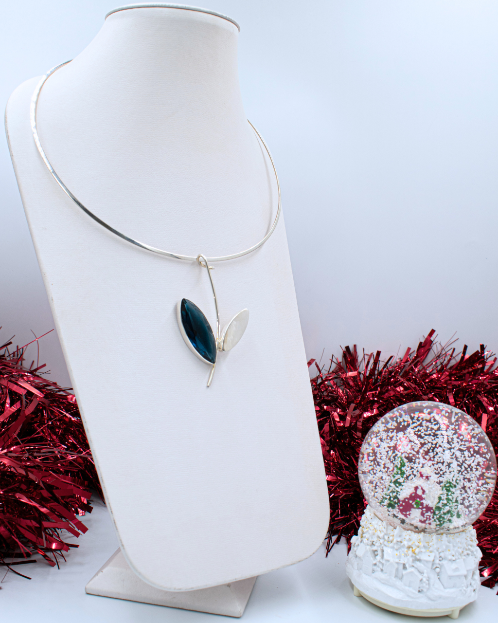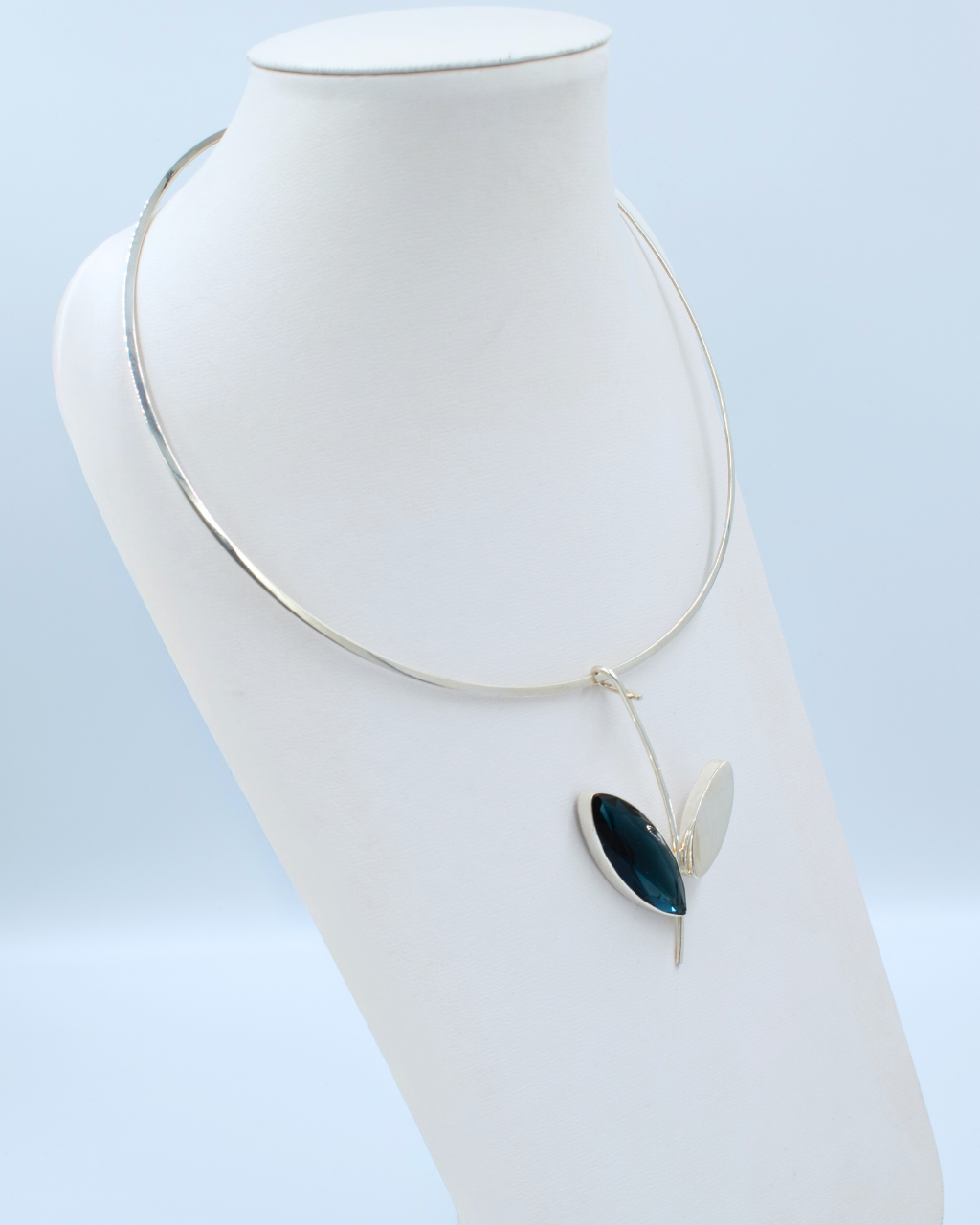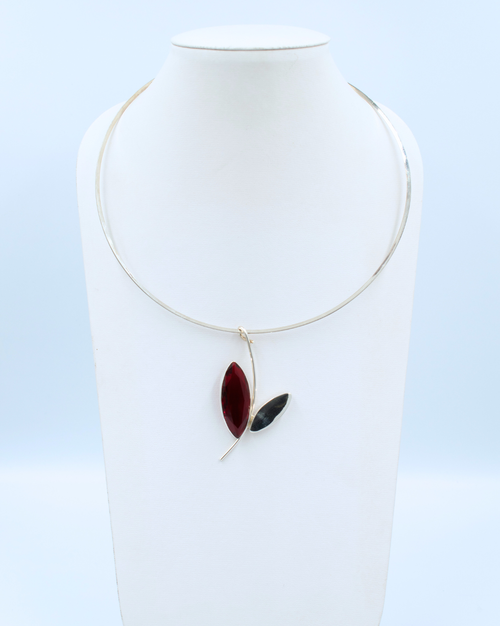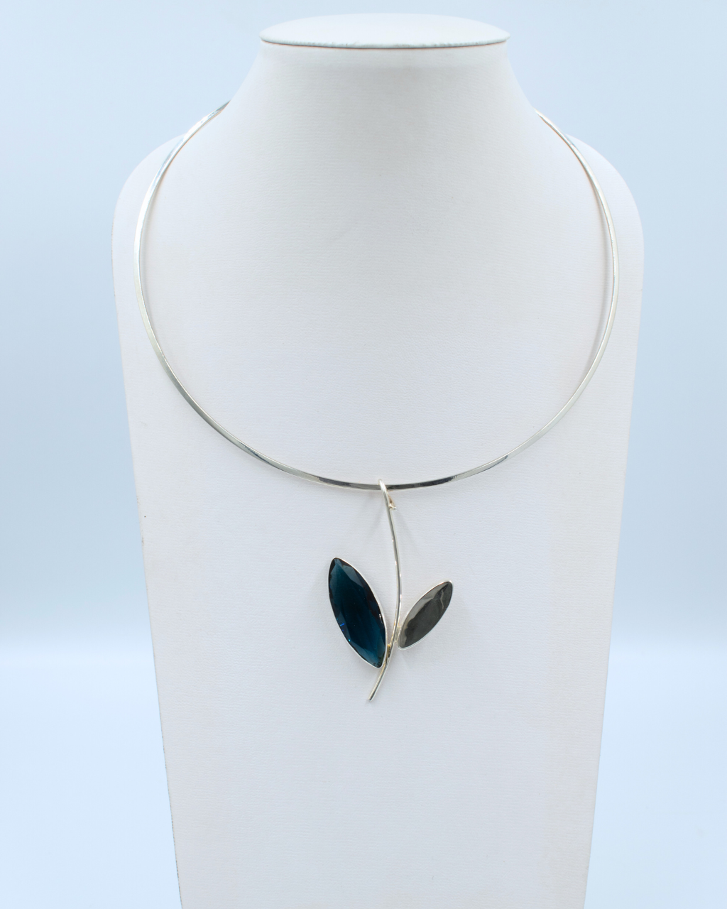Dije de plata con cristal Hoja de plata de 3cm Hoja de cristal de 4cm *No incluye collar