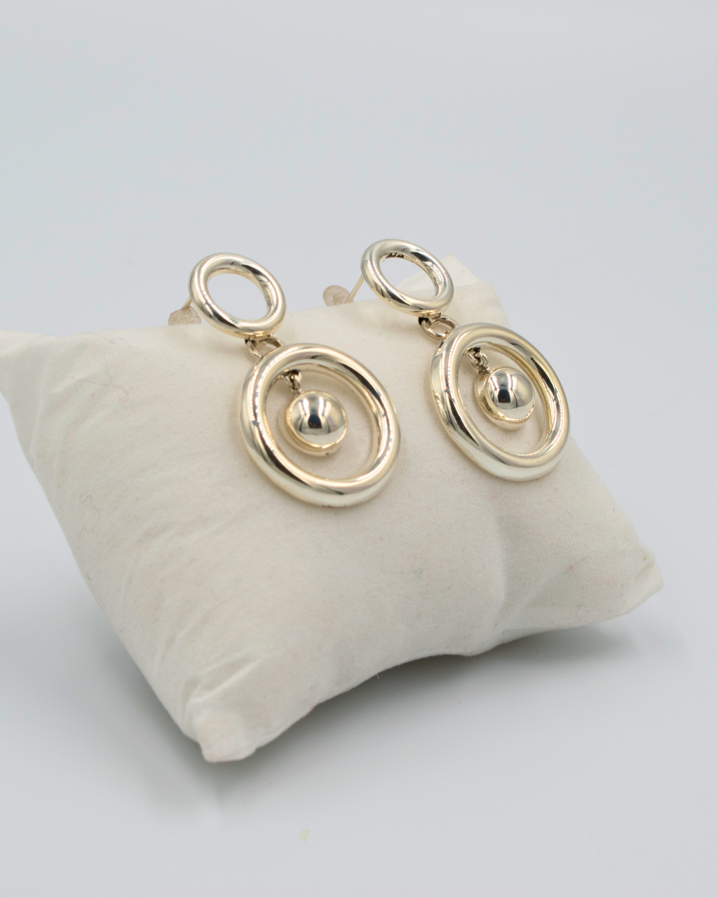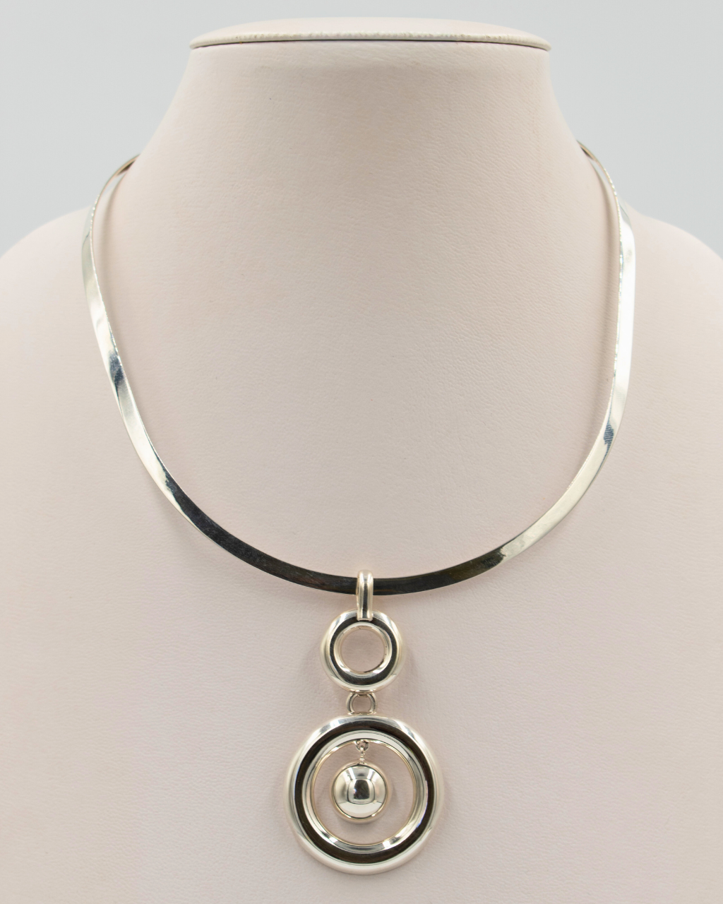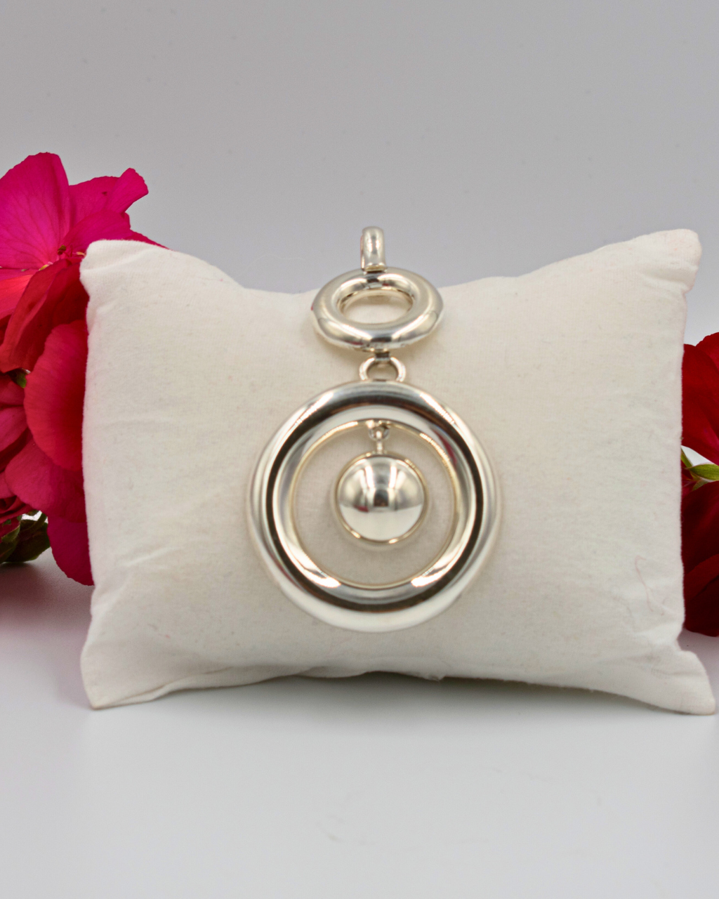 Círculos unidos con esfera de plata colgante en el centro