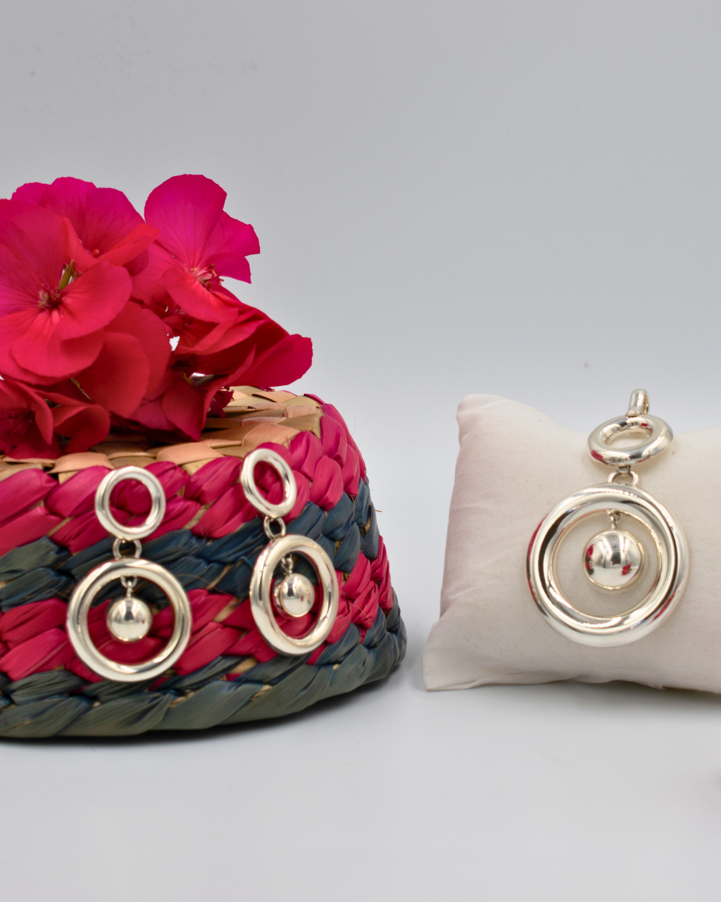 Juego de plata con dije y aretes